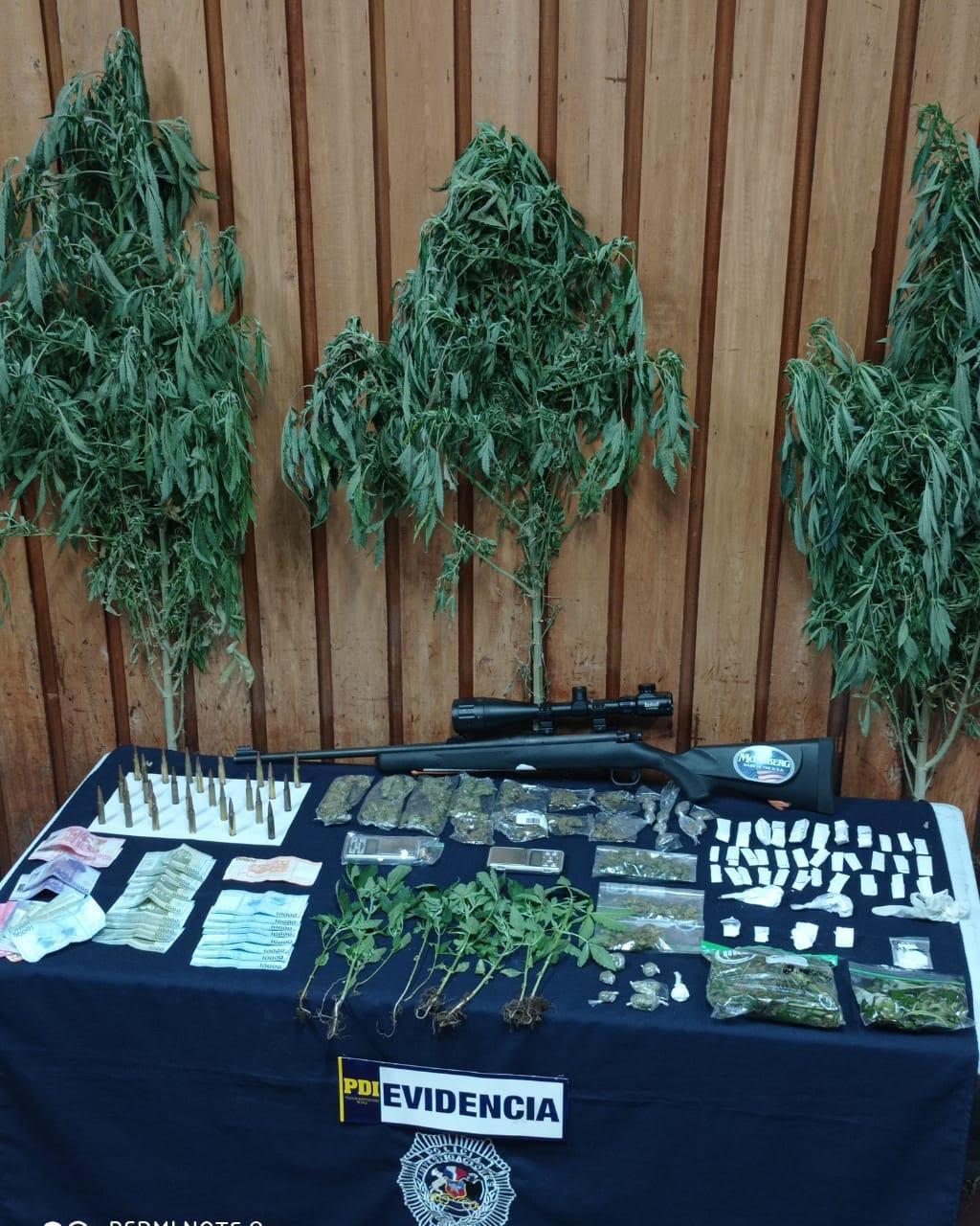 "Se lograron incautar 2.200 dosis de cannabis sativa, 11 plantas de la misma especie vegetal, y 100 dosis de clorhidrato de cocaína, droga avaluada en más de 10 millones de pesos, además de dinero en efectivo, balanzas digitales y elementos para la dosificación de la droga", indicó el jefe de la Brianco, quien agregó que y la droga fue remitida al Servicio de Salud Araucanía Norte.