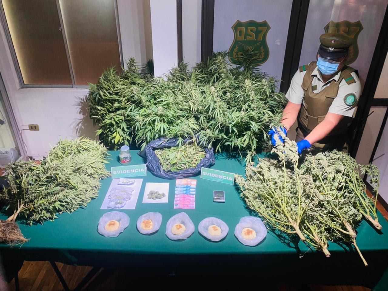 Es en dicho domicilio, que el OS-7 constató también que además de cultivar ilegalmente la droga, este mantenía 5 kilos de marihuana elaborada y 11 plantas entre 30 y 120 centímetros de alto, especies que fueron igualmente incautadas.