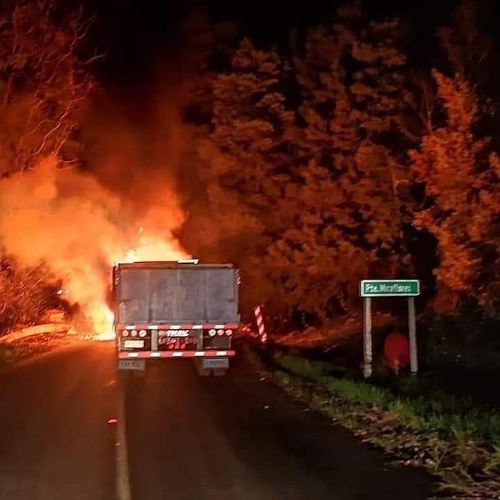 El mismo día del cambio de mando en la Jefatura de la Defensa de La Araucanía, desconocidos interceptaron un camión maderero y lo quemaron, sin que fuera alguno detenido.