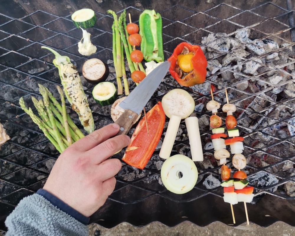 El fuego siempre debe ser suave y, si las brasas están muy fuertes, siempre se puede subir la parrilla, logrando así que nuestros productos consigan un dorado perfecto.