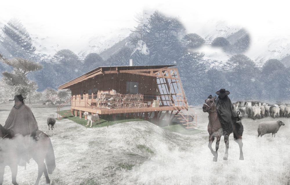 “La vivienda pretende proteger y potenciar el estilo de vida pehuenche funcionando como recibidor de sus recorridos”, describió Barría.