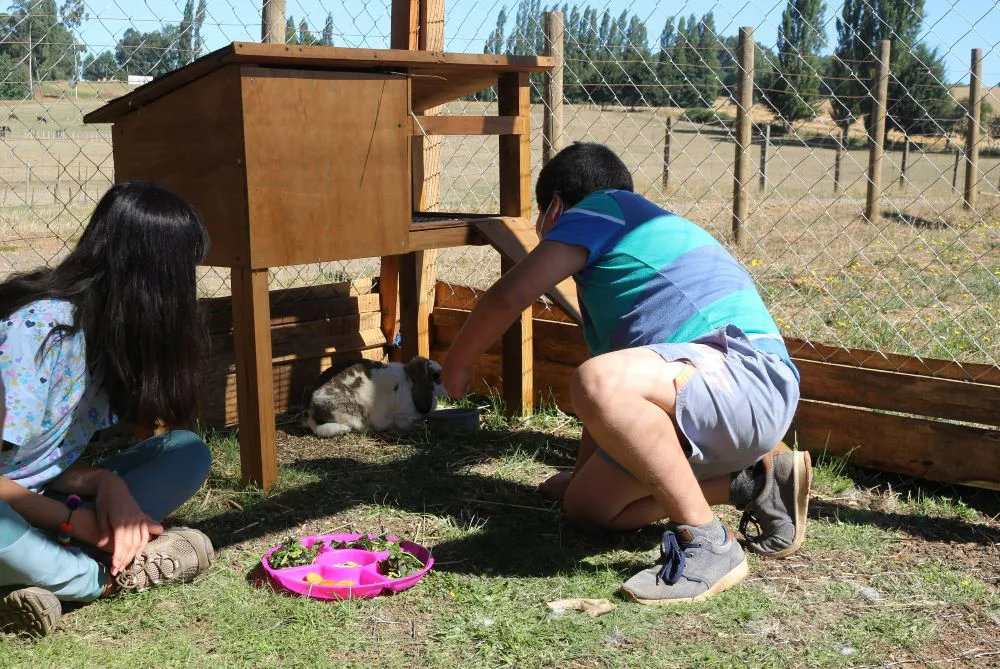 Gracias a la gestión del equipo regional del Servicio Nacional de Protección Especializada a la Niñez y Adolescencia, Mejor Niñez, un grupo de niños y niñas que se encuentran en residencias familiares realizan particulares sesiones terapéuticas con el aporte de animales de granja.
