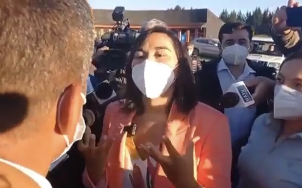 Sin embargo, al poco avanzar para despedirse de quienes la acompañaron en la actividad, la ministra fue interceptada por un hombre, al parecer mapuche, quien le pidió que se revisaran las causas y procesos donde manifestó que habían "montajes" para encarcelar a los mapuche. Y la ministra Siches le respondió.