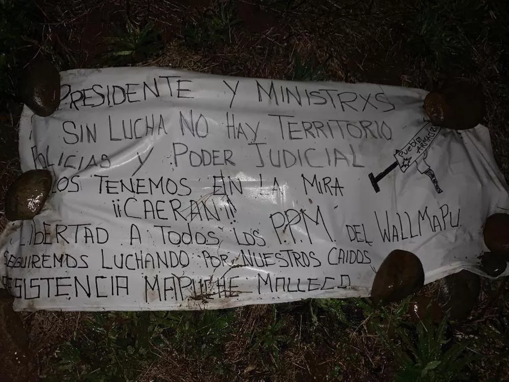 Pero no es todo, ya que además se confirmó la presencia de un lienzo en el sitio del suceso, efectuando directas amenazas en contra del Poder Judicial y las policías, sumado a la "liberación de los denominados presos políticos".