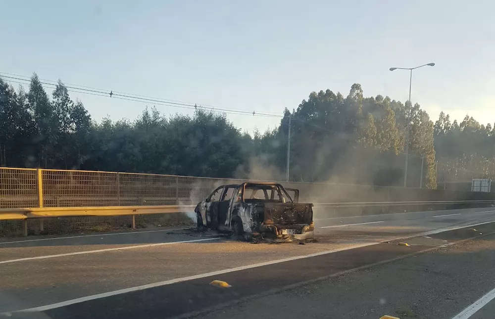 En tanto, la concesionaria Ruta del Bosque advirtió a los conductores de la presencia de los restos del vehículo quemado en la calzada.
