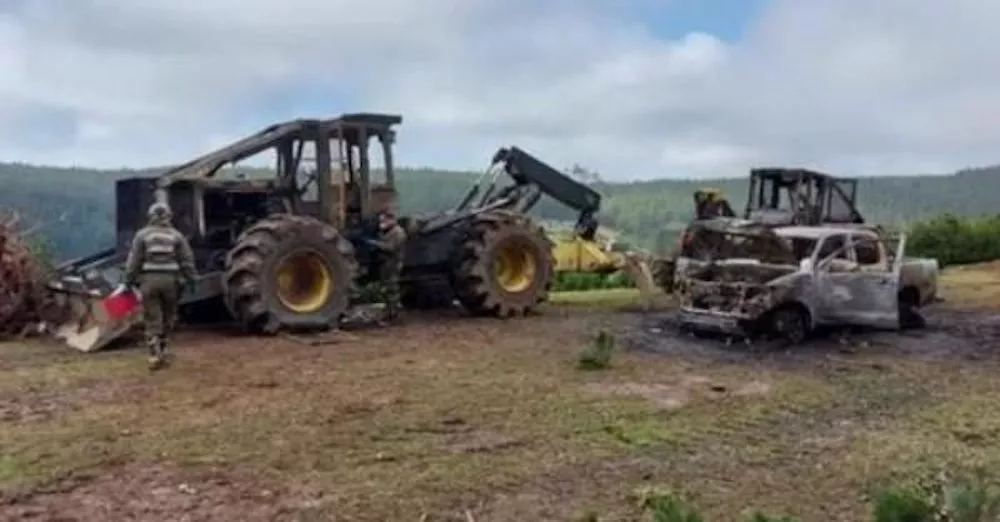 Un grupo indeterminado de personas atacó ayer una faena forestal en la sexta región, puntualmente en el fundo Las Cruces, entre Cahuil y Bucalemu, dejando 2 skiders y una camioneta destruída, más un procesador con daños parciales.