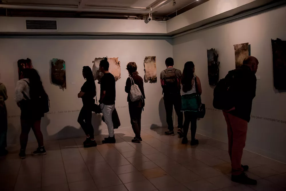 El autor de la exposición y académico de la UCT, Alex Mellado Larraín, ahondó en las técnicas empleadas durante la realización, detallando que “cada material presente en esta muestra ha sido trabajado a lo largo de cinco años. Por ejemplo, dentro de la exposición hay una serie llamada Intemperie, donde las obras estuvieron expuestas al aire libre, sometidas a las inclemencias del sur de Chile en el último lustro y que recién hoy fueron descubiertas para ser presentadas. Otra serie se llama El Lenguaje del Fuego donde hay elementos que literalmente fueron quemados en distintos paisajes de la región y que hoy presentan una estética sorprendente”.