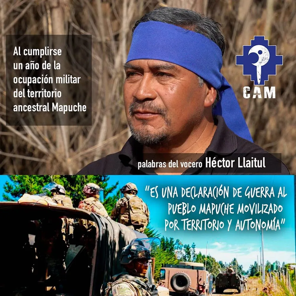 "Hace un año se declaró el Estado de excepción constitucional en el territorio ancestral mapuche, por un gobierno que se autodeclara democrático y «progresista», pero que a poco andar, asumió una posición clara respecto de la defensa de los intereses de los grandes grupos económicos", comienza la carta enviada por el vocero de la Coordinadora Arauco Malleco CAM, Héctor Llaitul, al cumplirse un año ininterrumpido de Excepción Constitucional en la Macrozona Sur.
