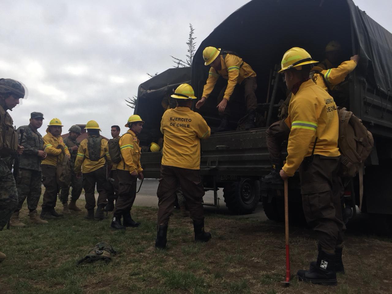 Personal de Conaf, Bomberos, PDI, militares y más, se encuentran combatiendo el fuego durante esta jornada, según la información entregada esta noche en su primer día como jefe de Defensa Nacional, general de la Brigada de Ejército, Rodrigo Pino.