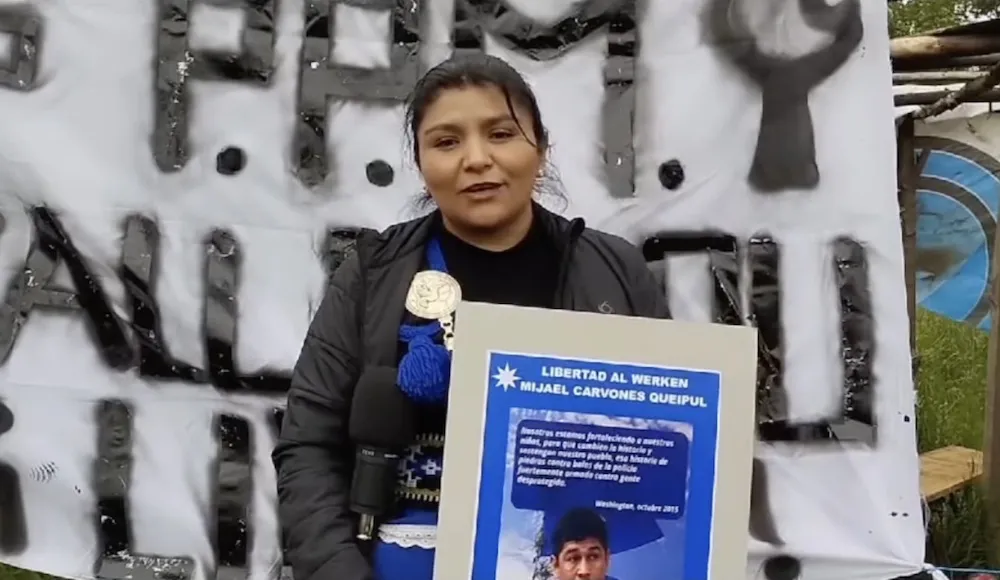 "El día 14 de noviembre el decidió irse a huelga para visibilizar y también para hacer un debido proceso al juicio injusto que le están montando, por eso el día de hoy estamos acá con las comunidades en resistencia, con las familias de los lof, para hacer el respaldo al werkén Mijael ... darle todo el newen, darle todo el apoyo emocional también, para que esto termine de una vez pro todas", añadió la afkadi de Carbone.