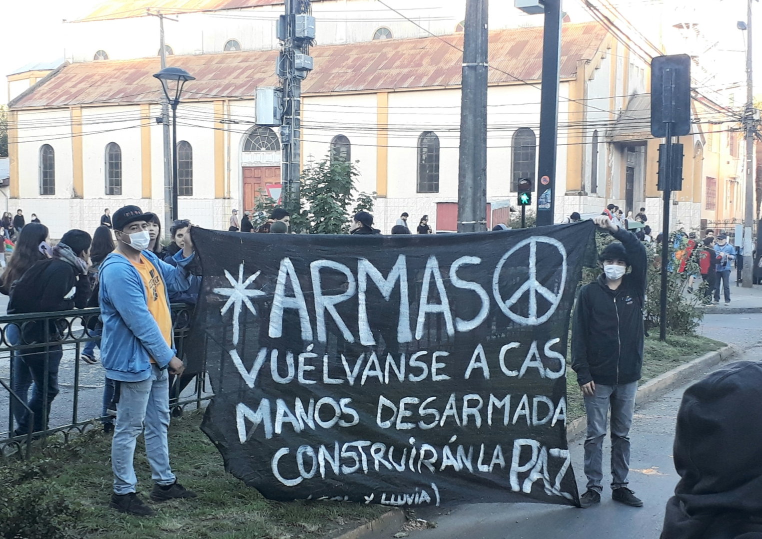 Una radiografía de la dicotomía del Chile de hoy, donde ayer se manifestaban pacíficamente estudiantes, familias y trabajadores sin causar ningún disturbio, mientras al mismo tiempo, a dos cuadras de distancia se enfrentaban Carabineros con manifestantes que elegían causar destrozos e intentar saquear el supermercado Santa Isabel y el servicentro Shell de Avenida Caupolicán.