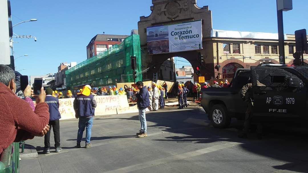 Durante la jornada de este miércoles, los trabajadores que desempeñan labores de construcción en el Mercado Municipal de Temuco se manifestaron en contra de sus jefaturas, quienes los mantienen en la obra arriesgando su salud ante el coronavirus.