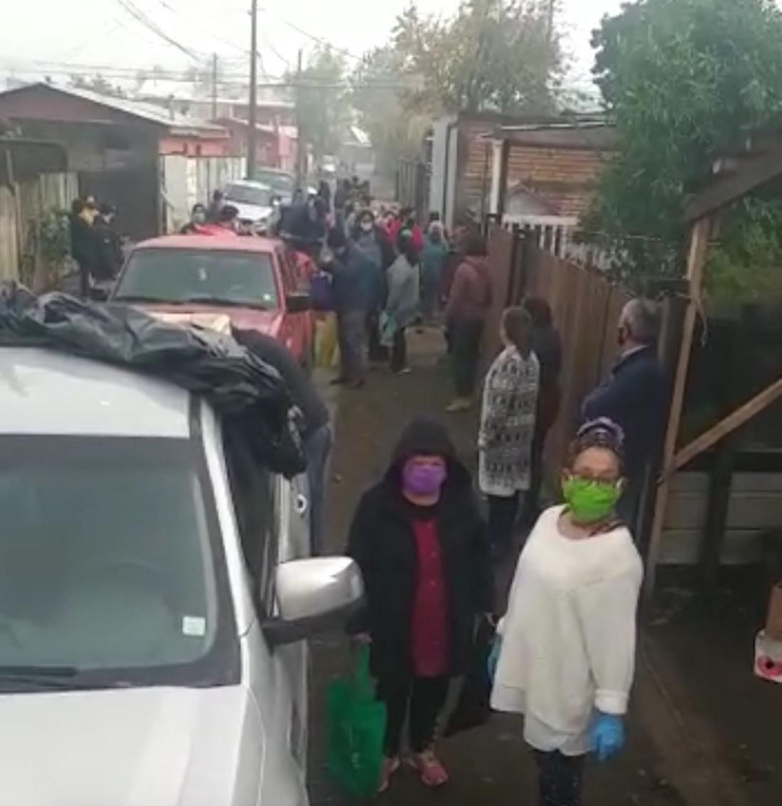 "Aquí nos encontramos en el sector San Antonio, con nuestra cooperación de nuestra caleta, de todos los pescadores, aquí estamos haciendo entrega de los pescaditos, las papitas, a cada uno de los habitantes de San Antonio ...", dijo uno de los pescadores mientras hacían la entrega.