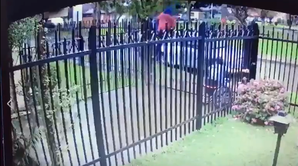 En las imágenes de la cámara de seguridad se ve a los sujetos saltando por la reja y luego escapando en un vehículo. Aunque uno de estos agresores fue detenido por vecinos, el conductor del vehículo echó marcha atrás impactando el portón del inmueble de la víctima, permitiéndole escapar. Debido a esta acción, la víctima habría recibido golpes en la cabeza.
