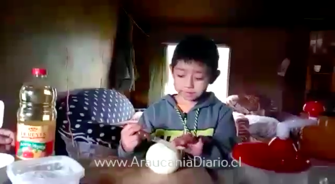 JuanJo estudia en 1º básico de la escuela Nueva Rucatraro, ubicada en la comunidad indígena Rucatraro Bartolo Queupan, en Isla Huapi, comuna de Saavedra y su profesora -y directora de la escuela- Ana María Liguenmil, le encargó una tarea: hacer una receta casera y que la enviara por video. Con la ayuda de su mamá, esto resultó: