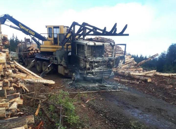 Tras intimidar a los trabajadores, los atacantes quemaron 7 camiones, 2 grúas y 1 camioneta. En el escape, los desconocidos sustrajeron dos camionetas para salir del lugar. Ante estos hechos, el fiscal de turno, instruyó a la Brigada de Investigaciones Policiales Especiales de la PDI para que realizara las primeras diligencias para esclarecer lo sucedido.