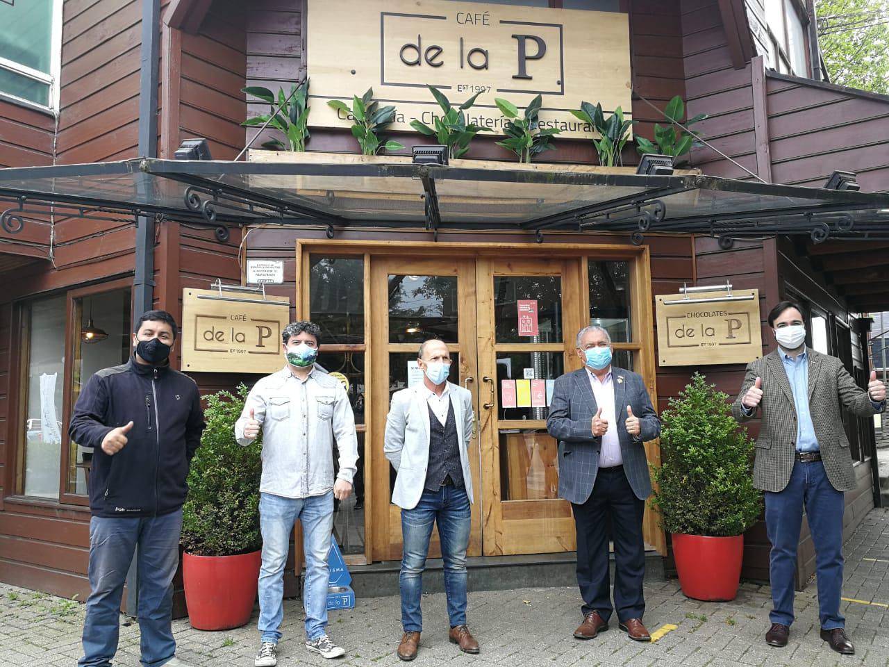 En pleno centro de Pucón, se dieron cita el Seremi de Economía Francisco López, el Alcalde de la comuna Carlos Barra, Néstor Fiorentini, representante del gremio de restaurantes de Pucón y algunos empresarios, quienes en conjunto anunciaron que con esta actualización del Plan Paso a Paso, ahora se permitirá el funcionamiento con aforo interior de un 25% a los restaurantes, cafés y recintos análogos de las comunas en fase 3 del plan Paso a Paso del Gobierno.