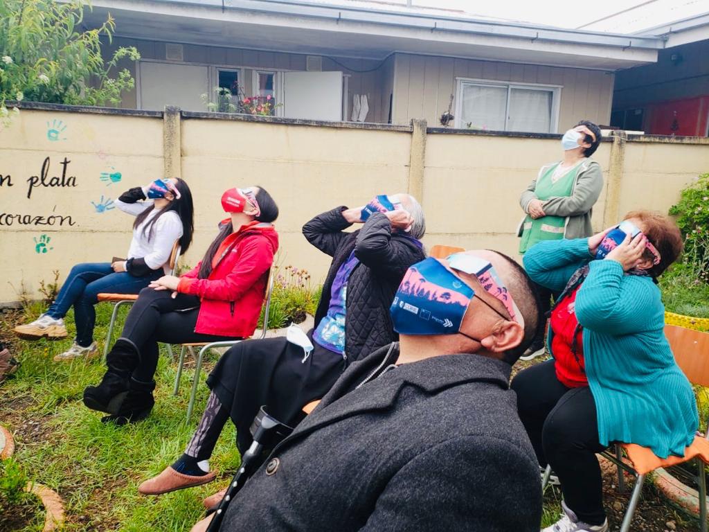 Las personas mayores fueron testigos del emocionante momento donde apreciaron el oscurecimiento del sol por casi dos minutos, sin duda, un día único e inolvidable. En ese contexto, los adultos mayores tuvieron la posibilidad de maravillarse con este evento natural, de manera ciento por ciento segura, ya que el Gobierno Regional dispuso la compra de 215 mil anteojos certificados para ver el eclipse para todas las personas mayores de la región de La Araucanía.