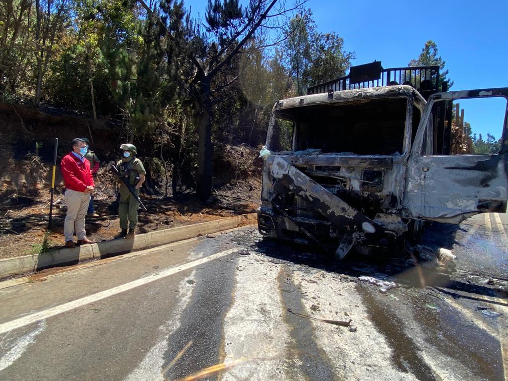 El mismo día del cambio de mando en la Jefatura de la Defensa de La Araucanía, desconocidos interceptaron un camión maderero y lo quemaron, sin que fuera alguno detenido.