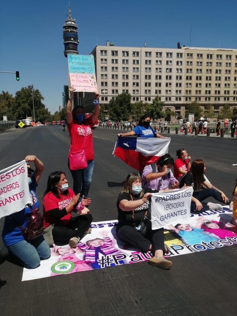 Hasta La Alameda acudieron representantes de distintas agrupaciones por la niñez para realizar una paralización del tránsito y expresar su descontento con el proyecto de ley que establece el sistema de garantías de los derechos de la niñez, iniciativa que iba a ser discutida ayer en el senado, pero que fue suspendida por falta de quórum.