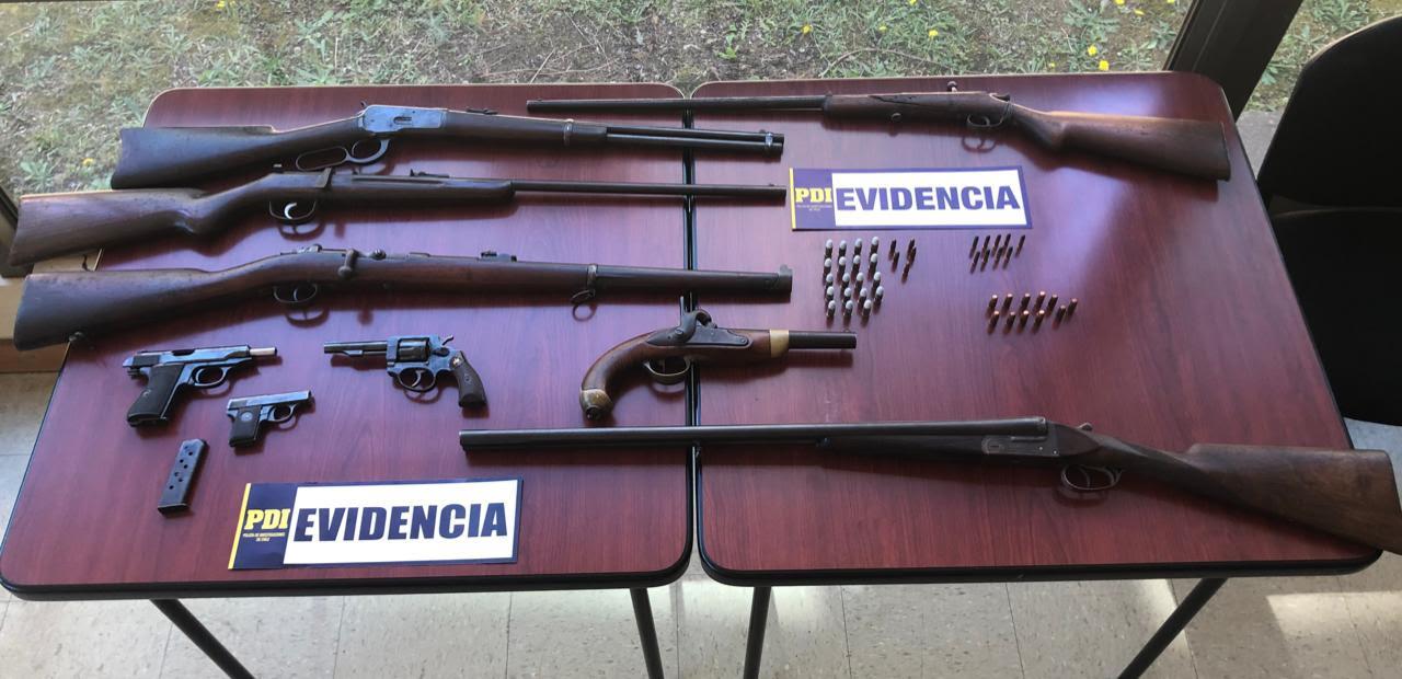 Se trata de tres rifles, dos pistolas marca Walther, una escopeta, una carabina marca Winchester calibre 44, un revólver calibre 22 largo y un arma de fuego de colección calibre 16, además de diversas municiones. Todas las armas serán remitidas al Laboratorio de Criminalística de Temuco con la finalidad de que sean periciadas.