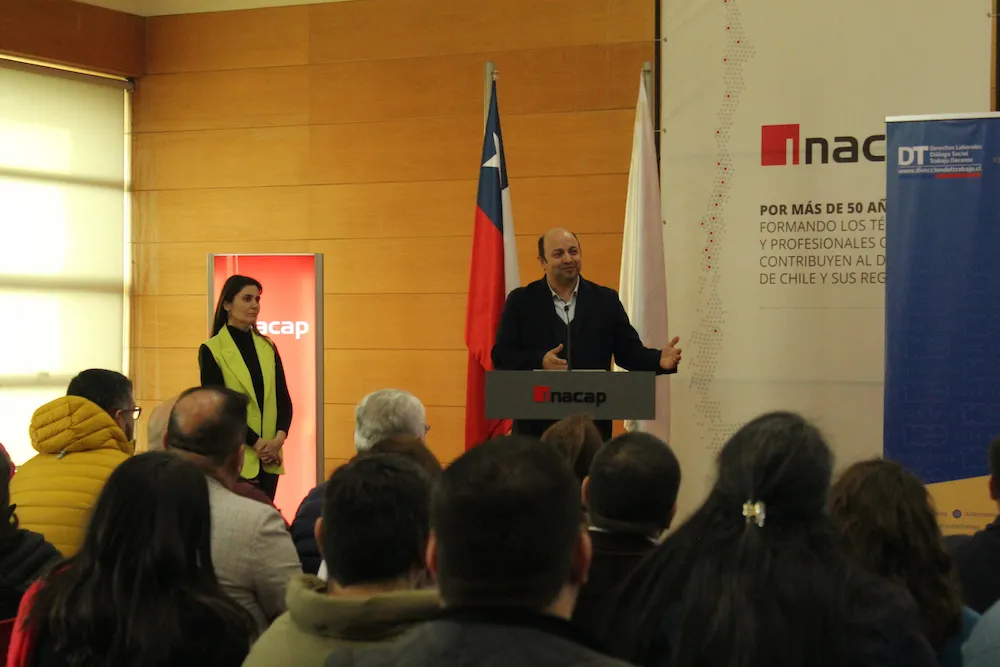 A la ceremonia asistió la directora regional Minerva Castañeda junto a autoridades como el delegado presidencial José Montalva y la seremi del Trabajo y Previsión Social, Claudia Tapia de la Peña